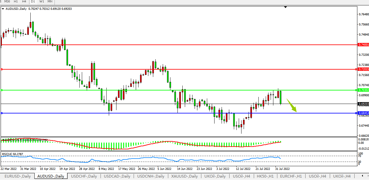 备选策略:0.7030上方看涨,目标0.7200、0.7400