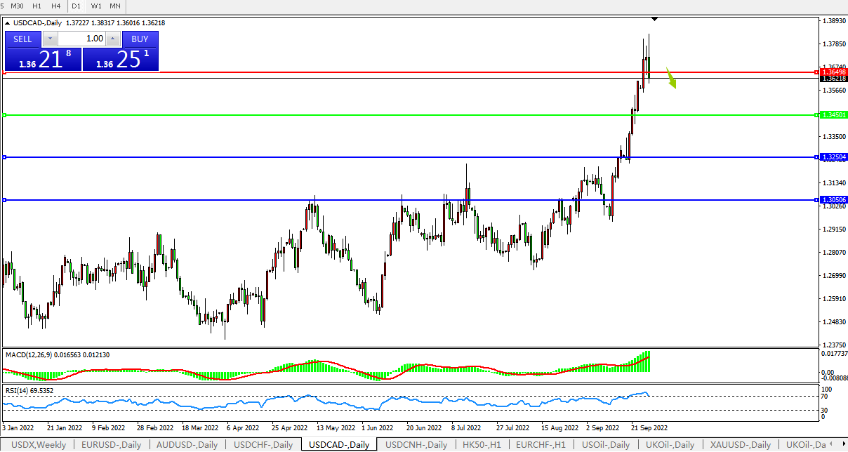 美元兑加元USDCAD  日线图:
