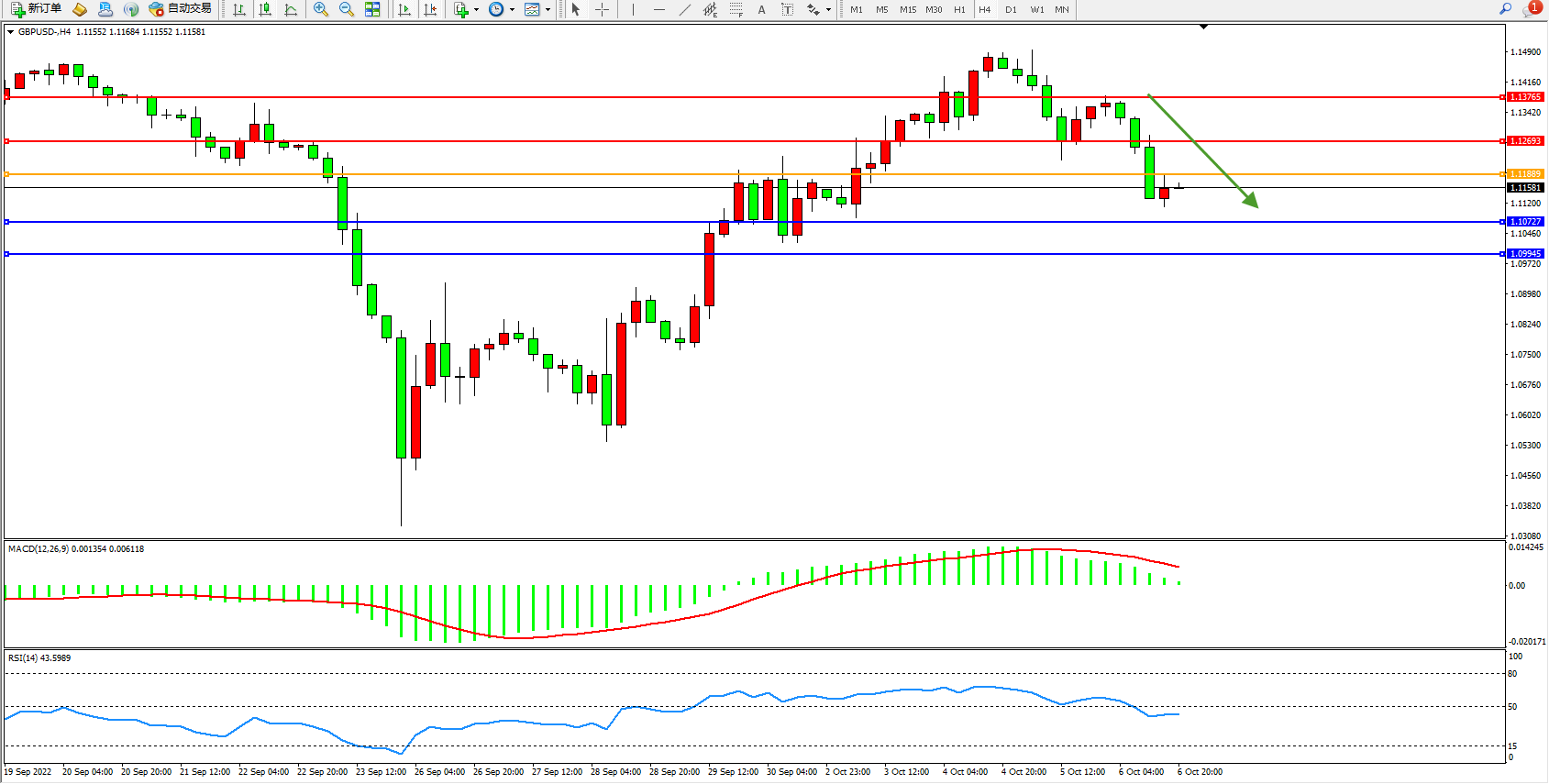 4小时图看:高位空头动力维持震荡回撤下行,短期跌势或将延续,市场空头情绪开始涌入,MACD指标处于0轴线附近弱势徘徊,RSI指标处于50均衡线下侧窄幅整理;