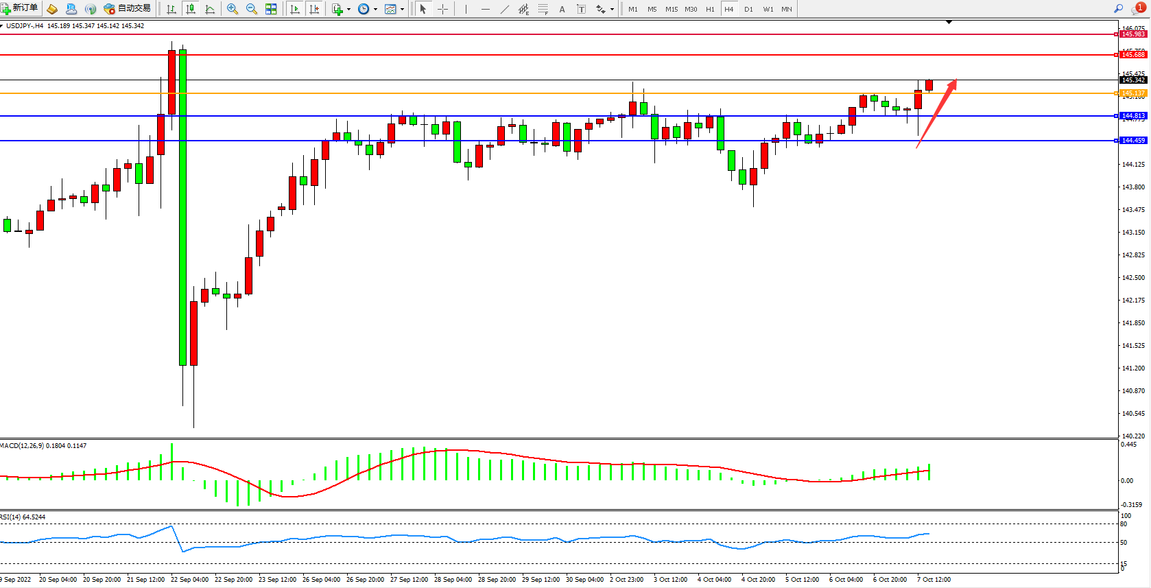 交易策略:145.137上方看涨,目标145.688、145.983