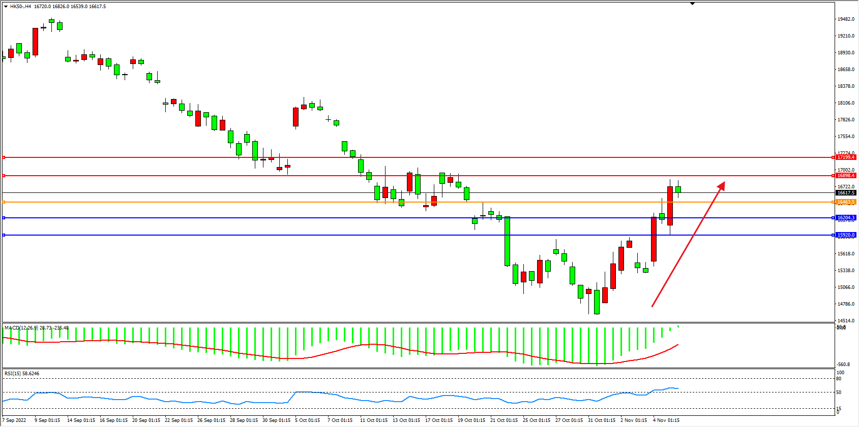 恒指HK50 4小时图