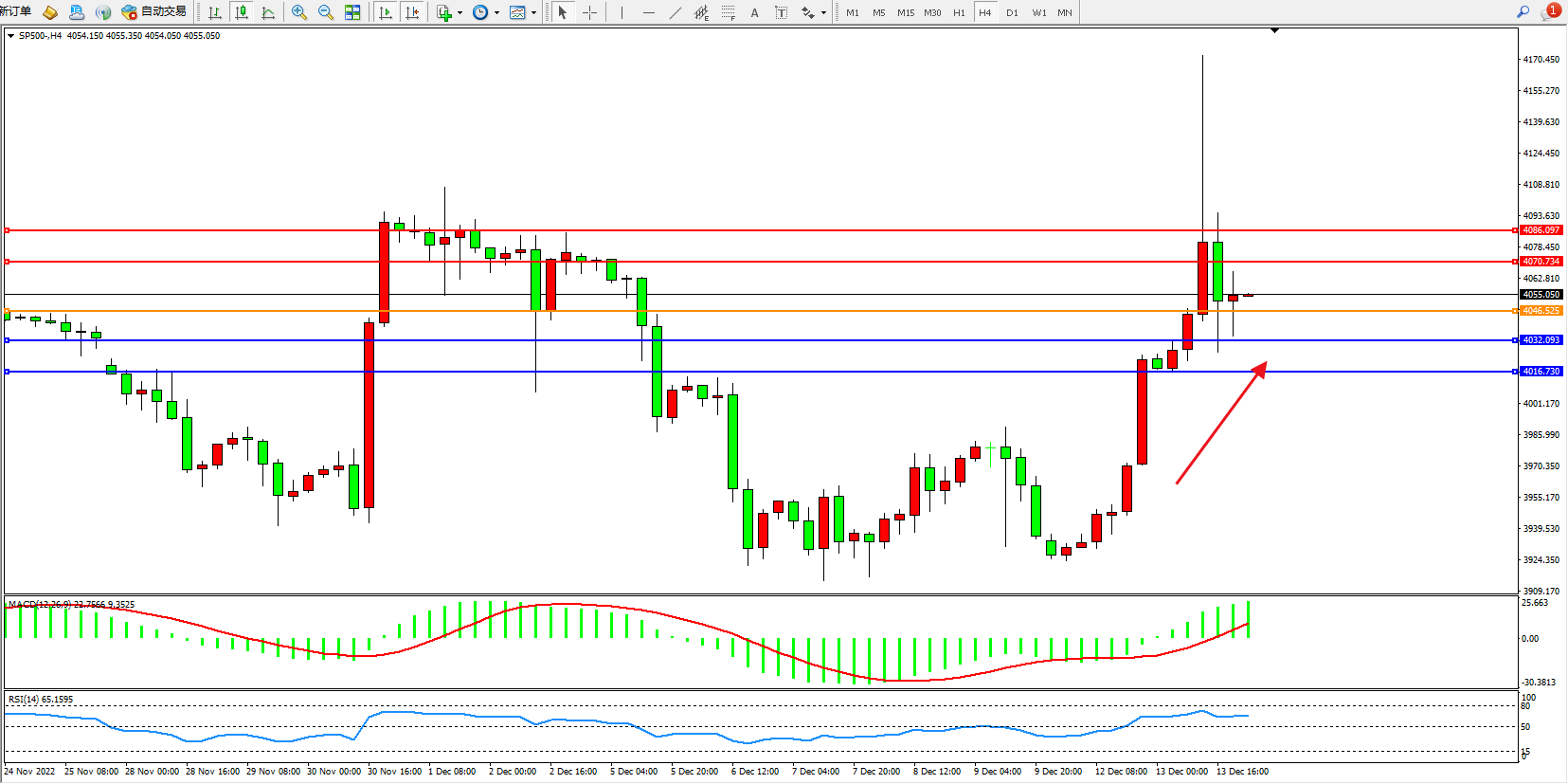 标普SP500——4小时K线图显示: