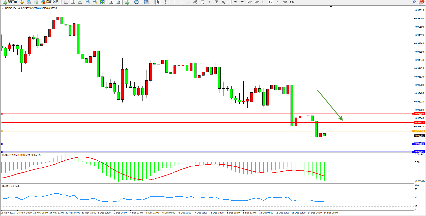 美元瑞郎USDCHF——4小时K线图显示: