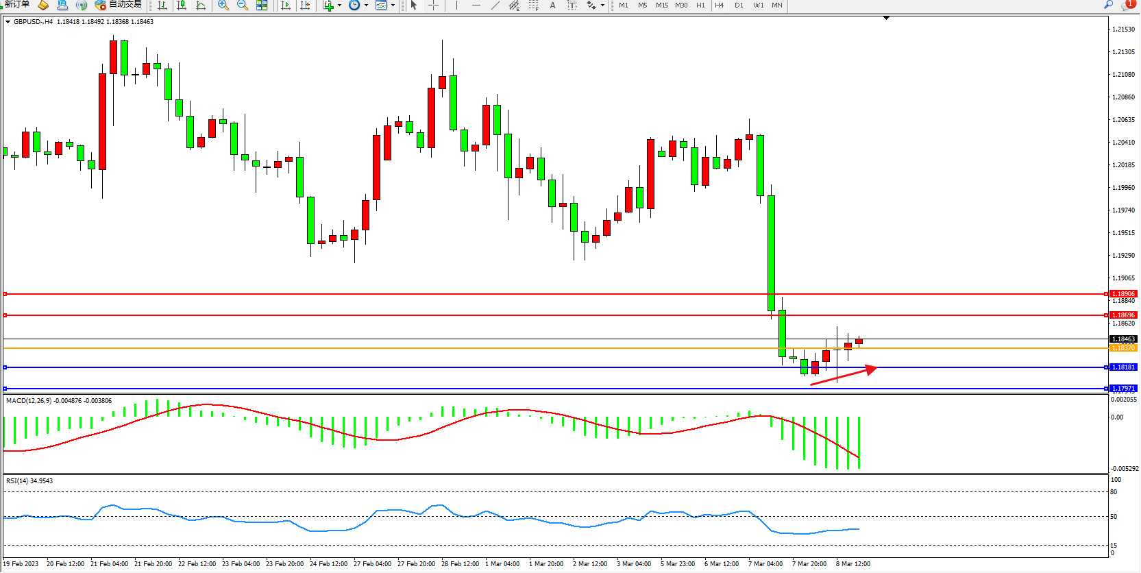 备选策略:1.18370下方看跌,目标1.18191  1.17971