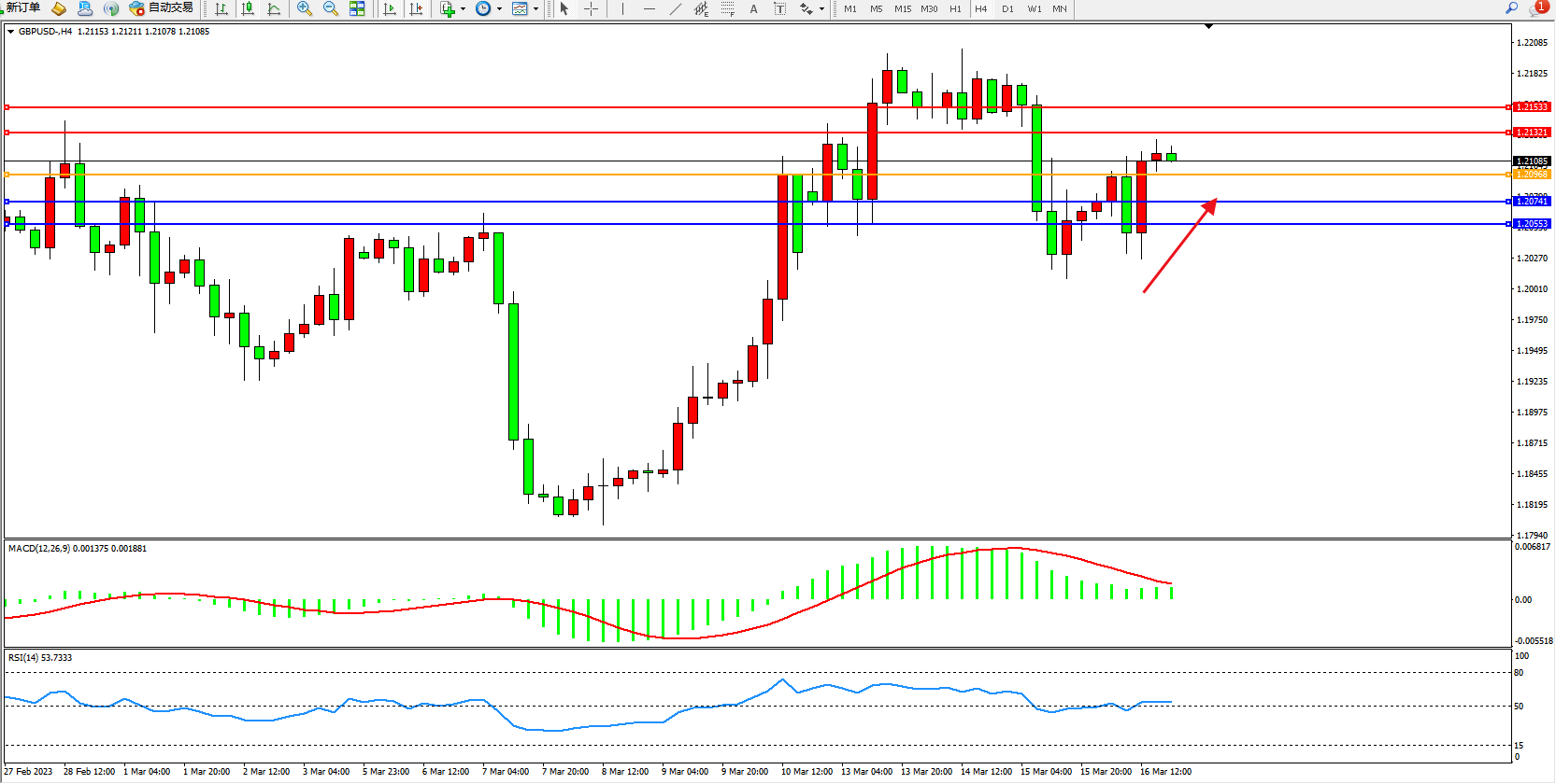 4小时图看:高位多头动力维持震荡上移,短期回撤后再度向上拉升,市场多头不断涌现,MACD指标处于0轴线上側徘徊,RSI指标处于50均衡线附近弱势整理;