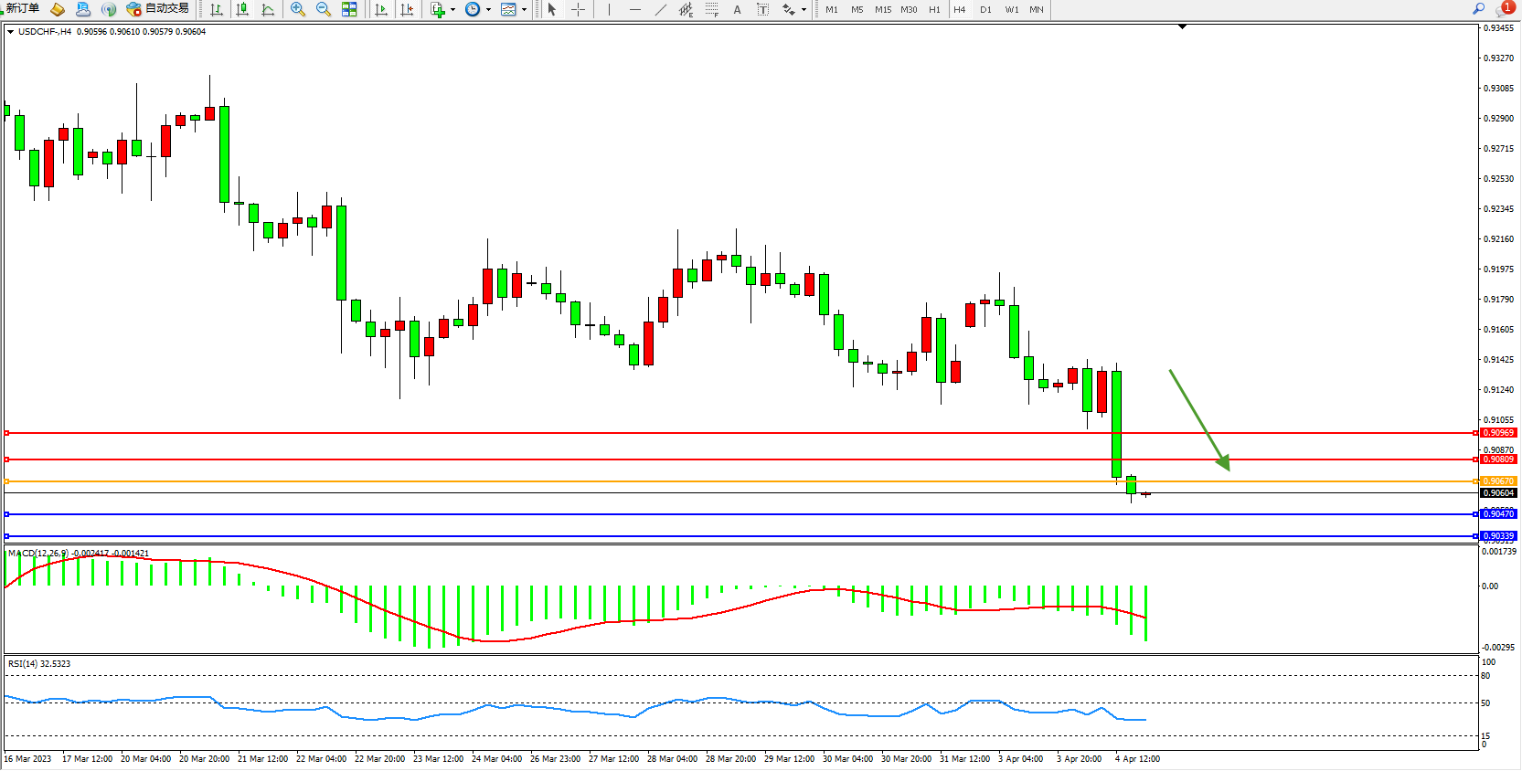美元瑞郎USDCHF——4小时K线图显示: