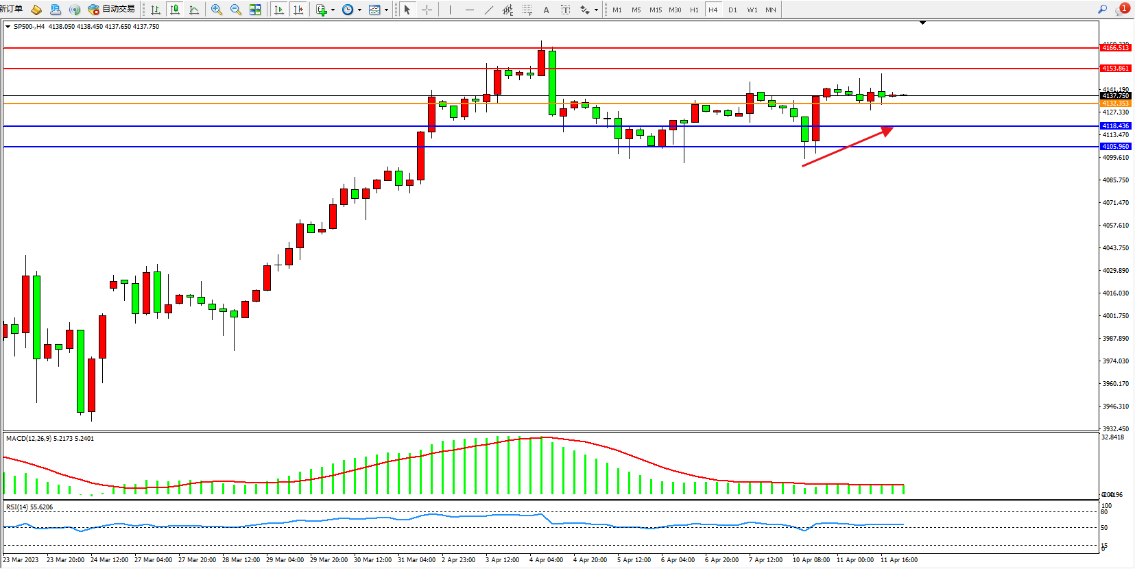标普SP500——4小时K线图显示: