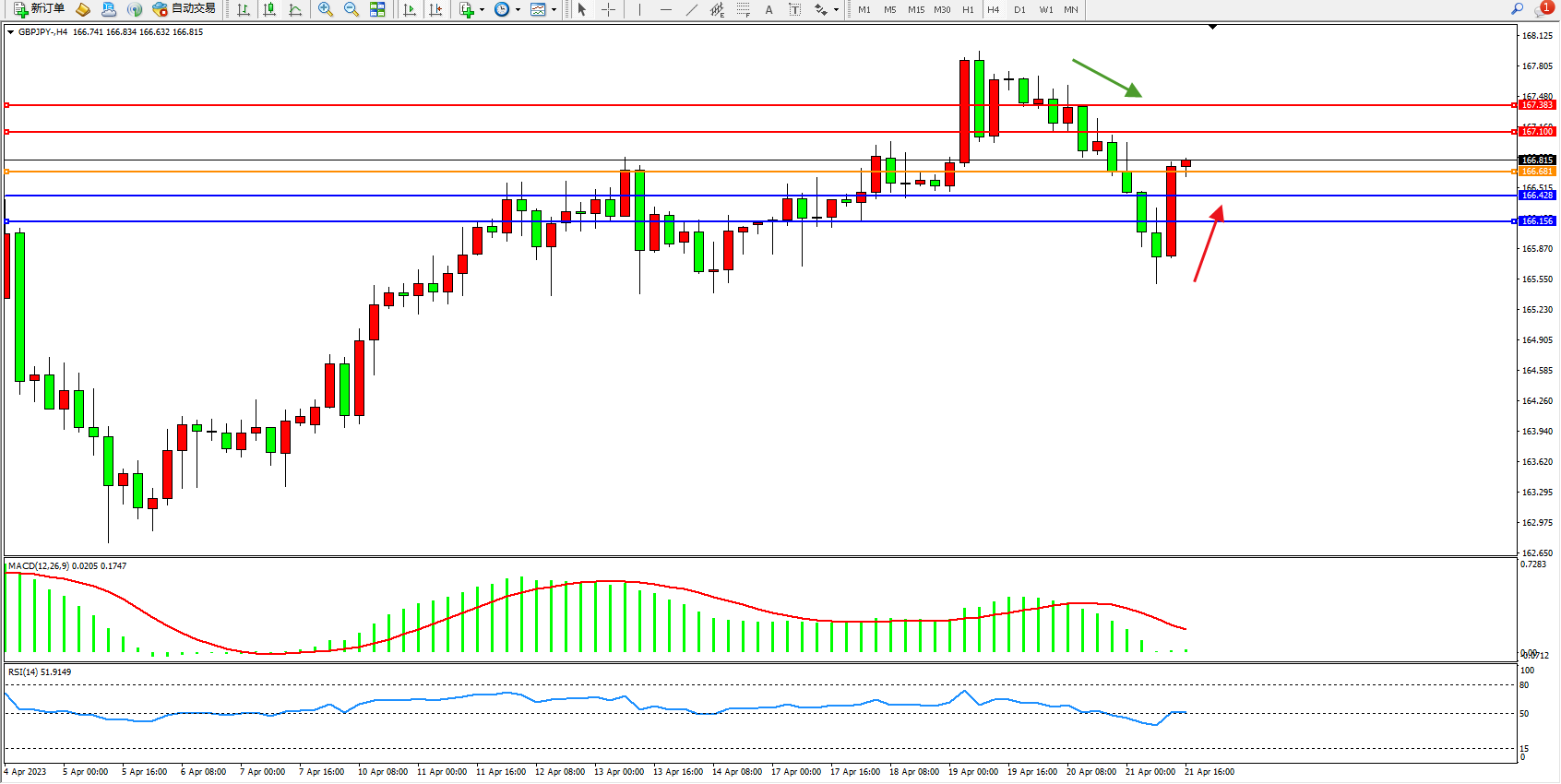 交易策略:166.681上方看涨,目标167.100 167.383