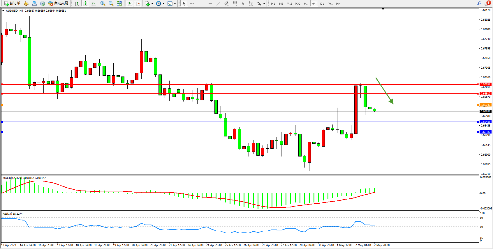 备选策略:0.66742上方看涨,目标0.66912 0.67052