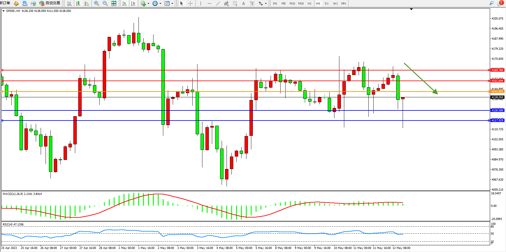标普SP500——4小时K线图显示: