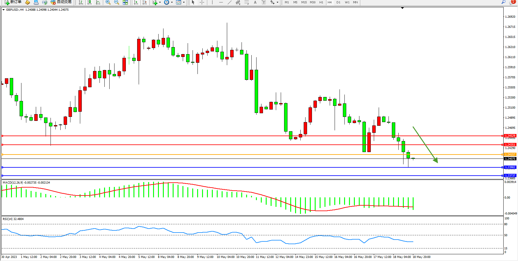 交易策略:1.24157下方看跌,目标1.23902  1.23737