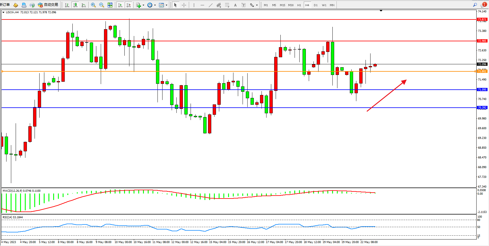 交易策略:71.802上方看涨,目标72.985 73.821
