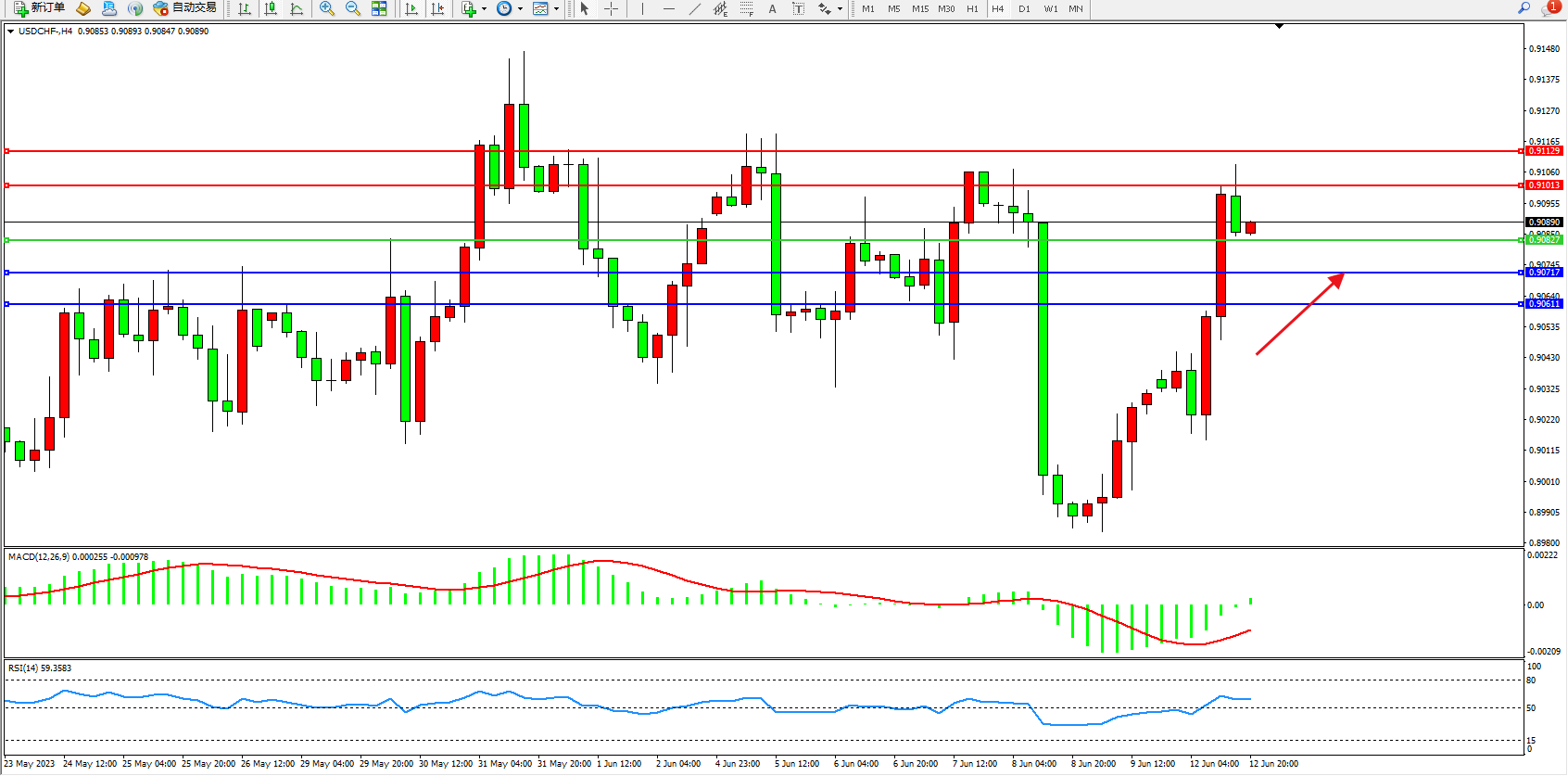 交易策略:0.90827上方看涨,目标0.91013 0.91129