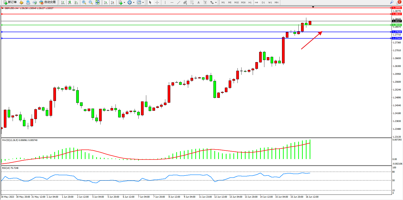 英镑美元GBPUSD ——4小时K线图显示: