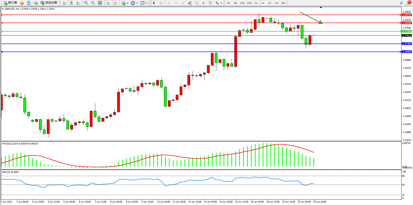 交易策略:1.27780下方看跌,目标1.27306 1.26990