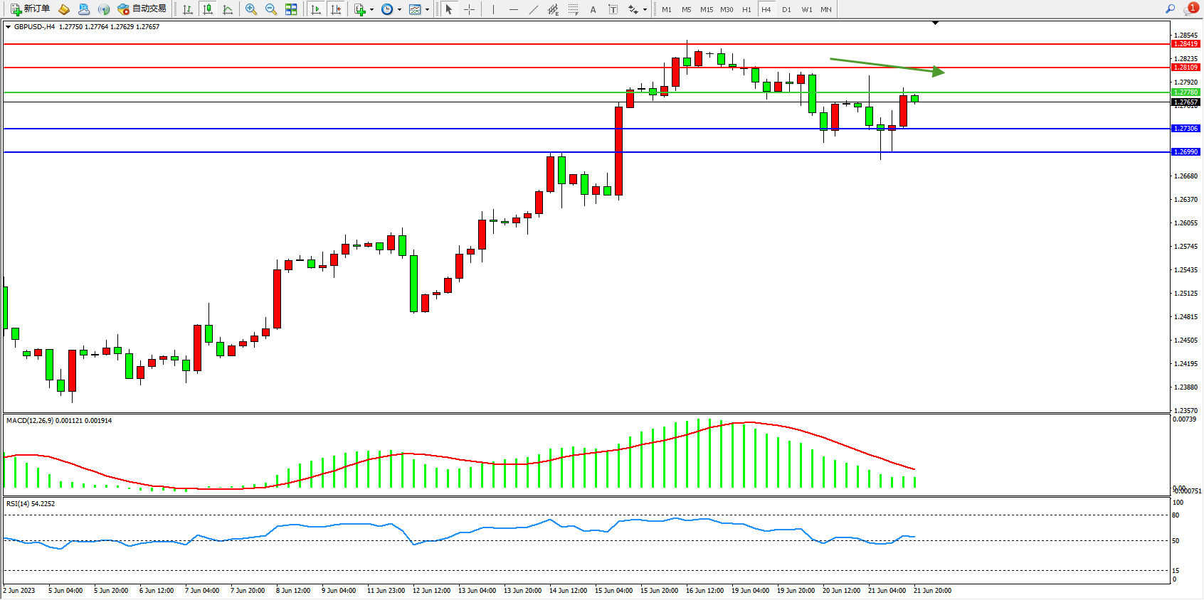 交易策略:1.27780下方看跌,目标1.27306 1.26990