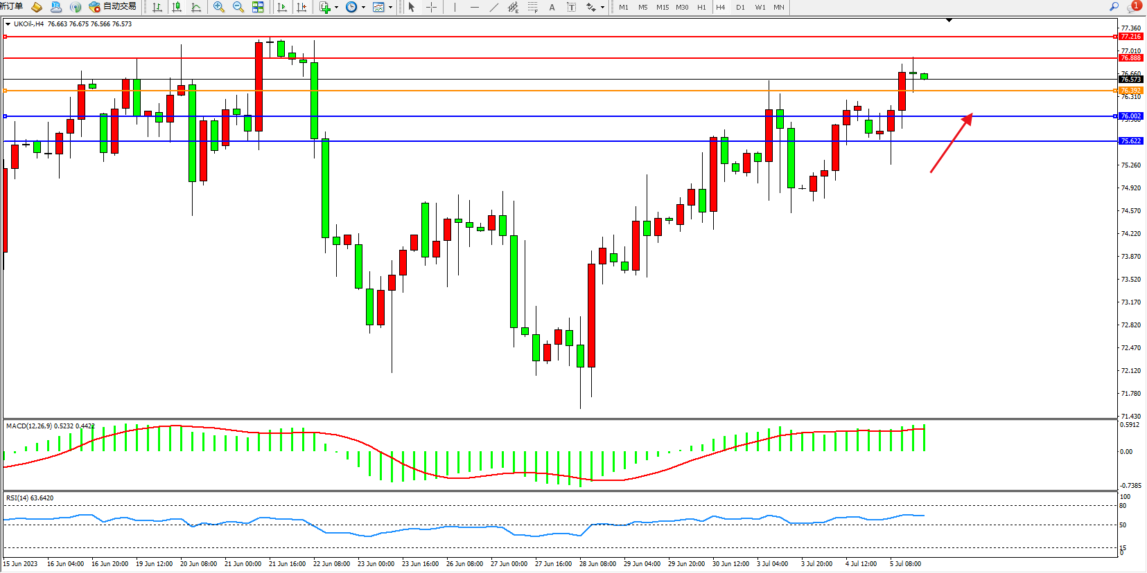 布油UKOil——4小时K线图显示:
