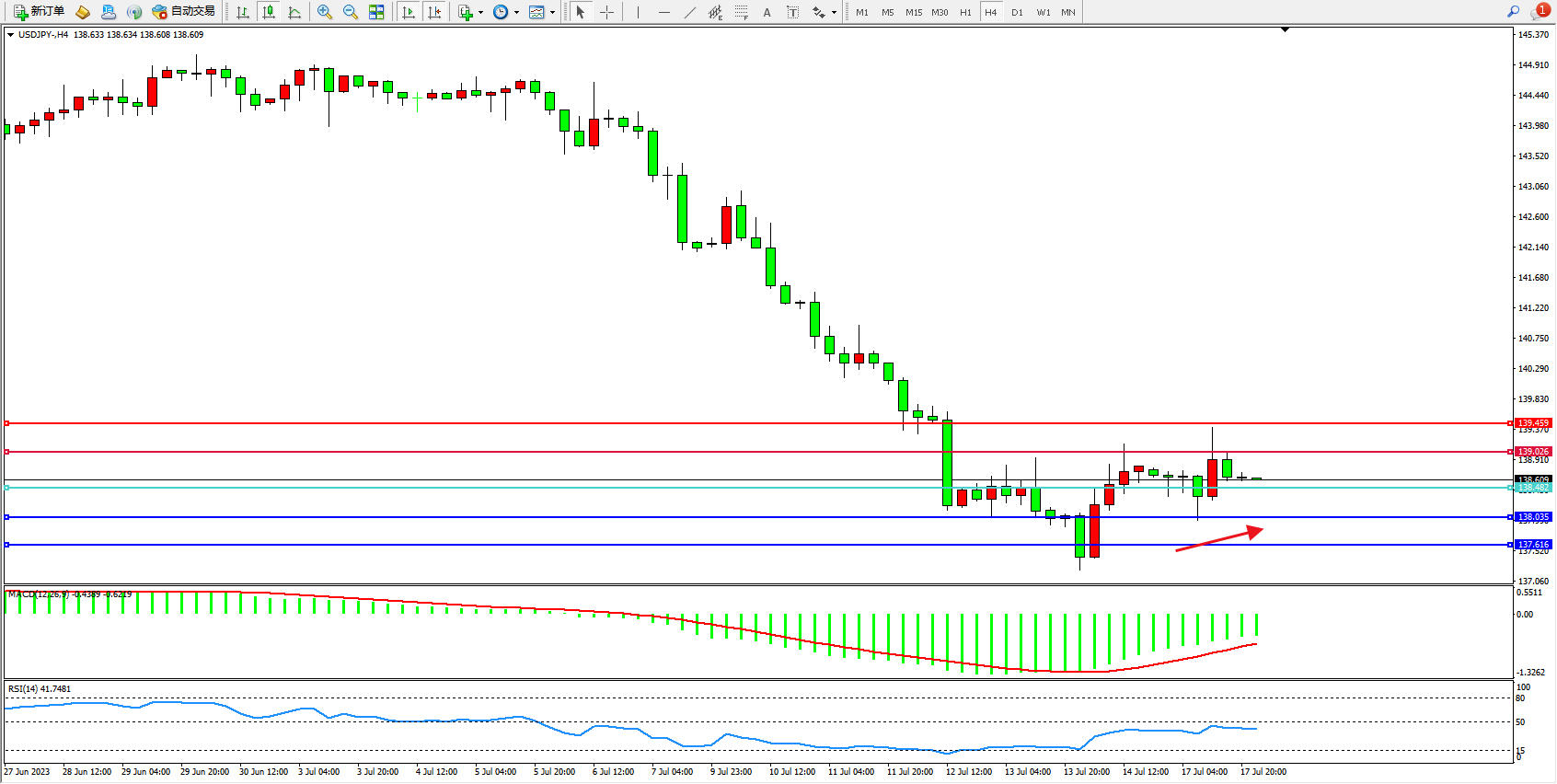 交易策略:138.482上方看涨,目标139.026  139.459