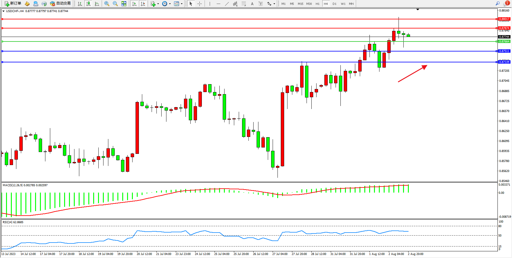 备选策略:0.87664下方看跌,目标0.87511 0.87339
