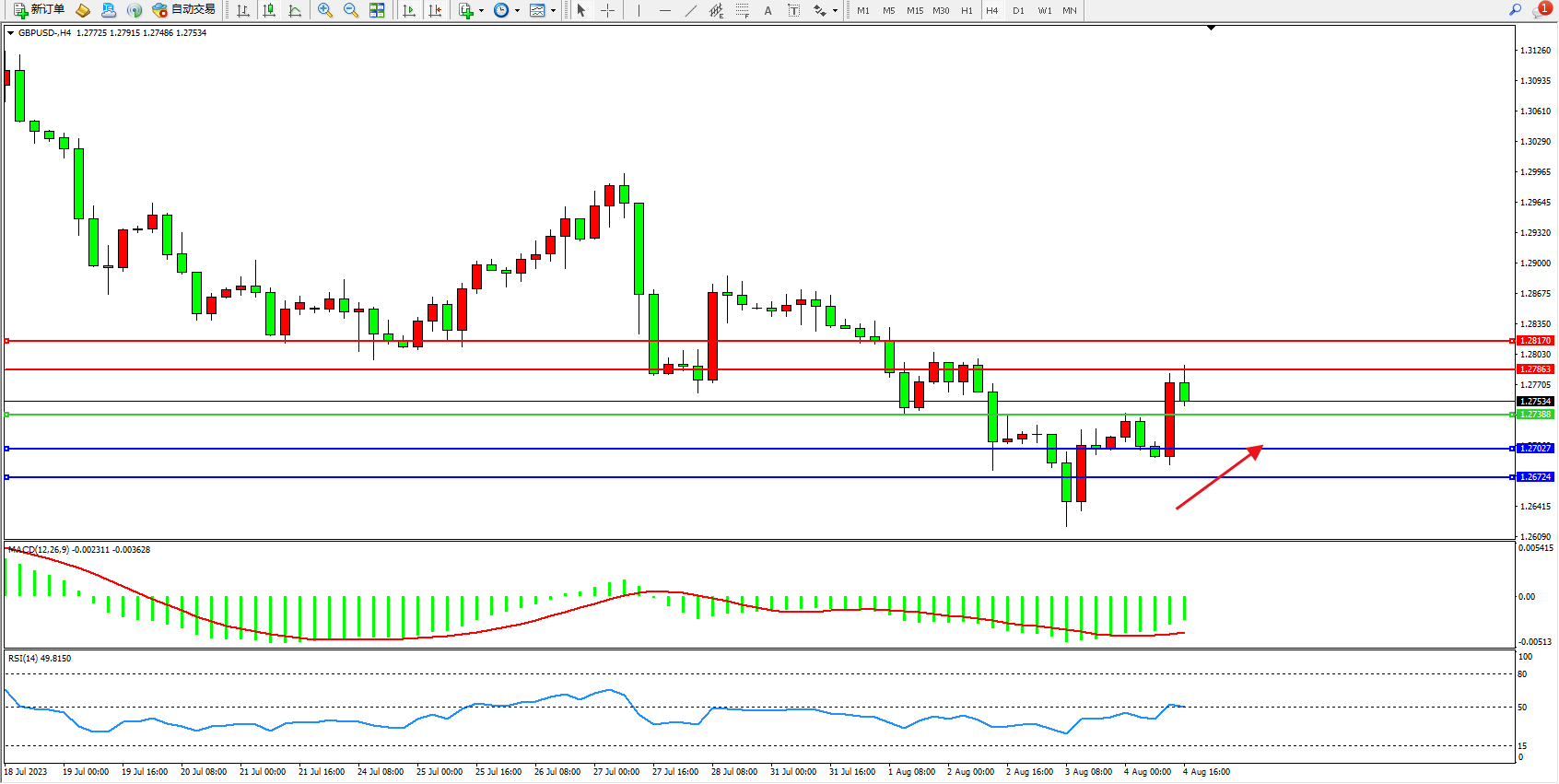 交易策略:1.27388上方看涨,目标1.27863  1.28170