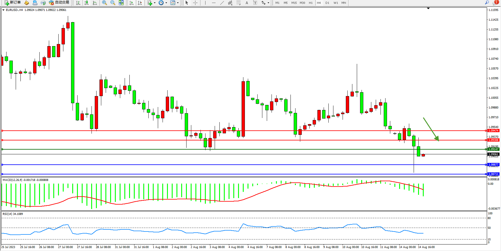 交易策略:1.09147下方看跌,目标1.08877  1.08711
