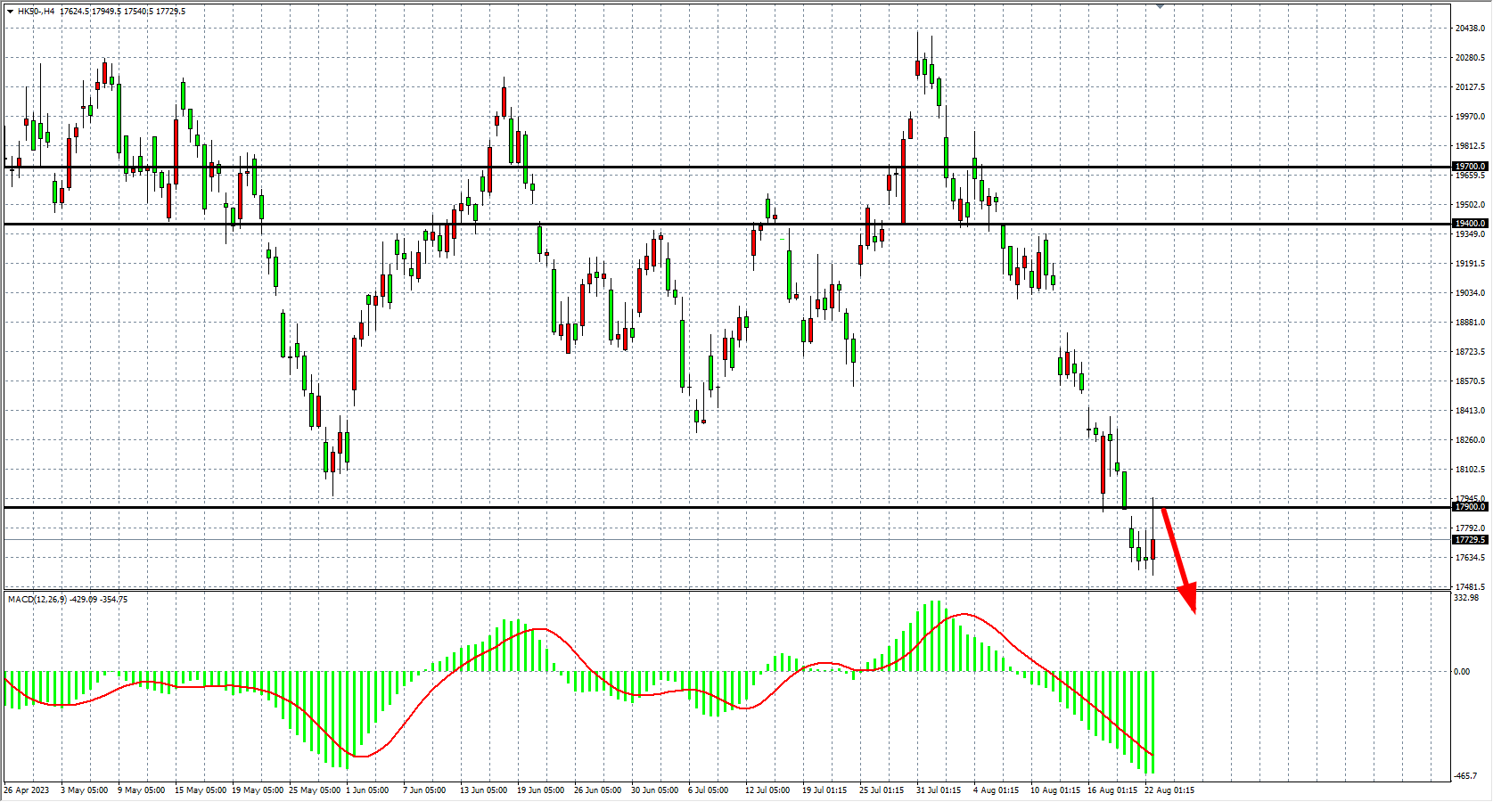 交易策略:17900    下方看跌,目标 17500  17200