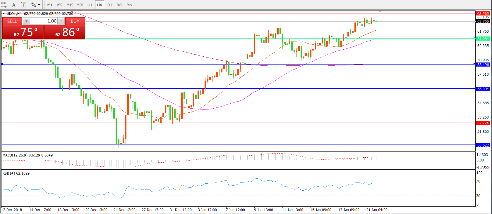 交易策略:在61.00之上看涨,目标63.00    67.00
