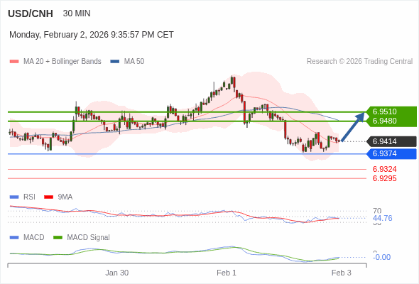 替代方案: 在6.9374以下,期待6.9324和6.9295。