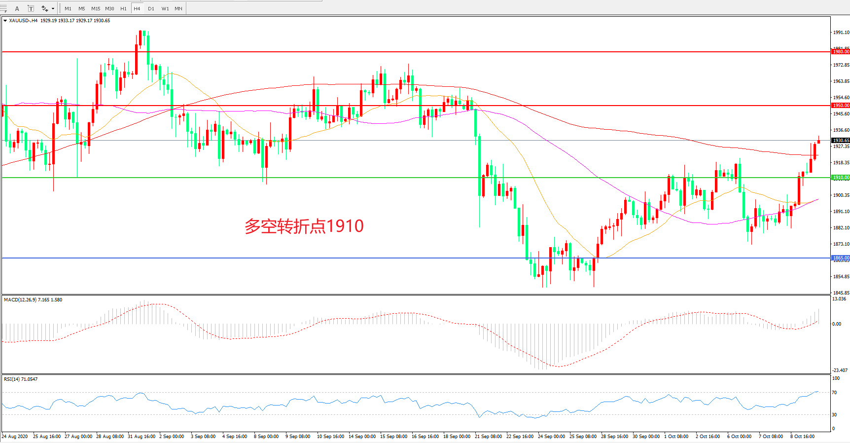 交易策略:在1910.00之上看涨,目标1950.00 1980.00