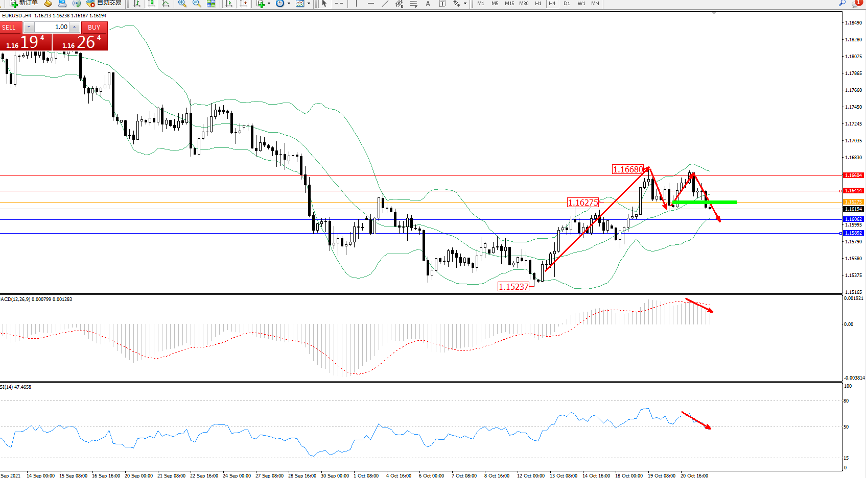 交易策略:1.16275下方看跌,目标1.16062、1.15892