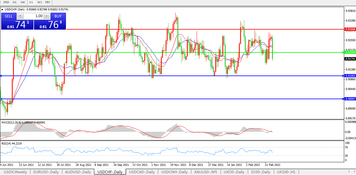 交易策略:0.9200下方看跌,目标0.9100、0.9000