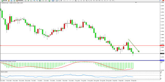 英镑兑美元本周震荡回落,受到强势美元打压,同时恶化的英国经济前景和英国政局波动都给英镑压力。英国正处于历史罕见的能源危机和高通胀之中,英国年底前通胀将上升至13%,并引发长期衰退。