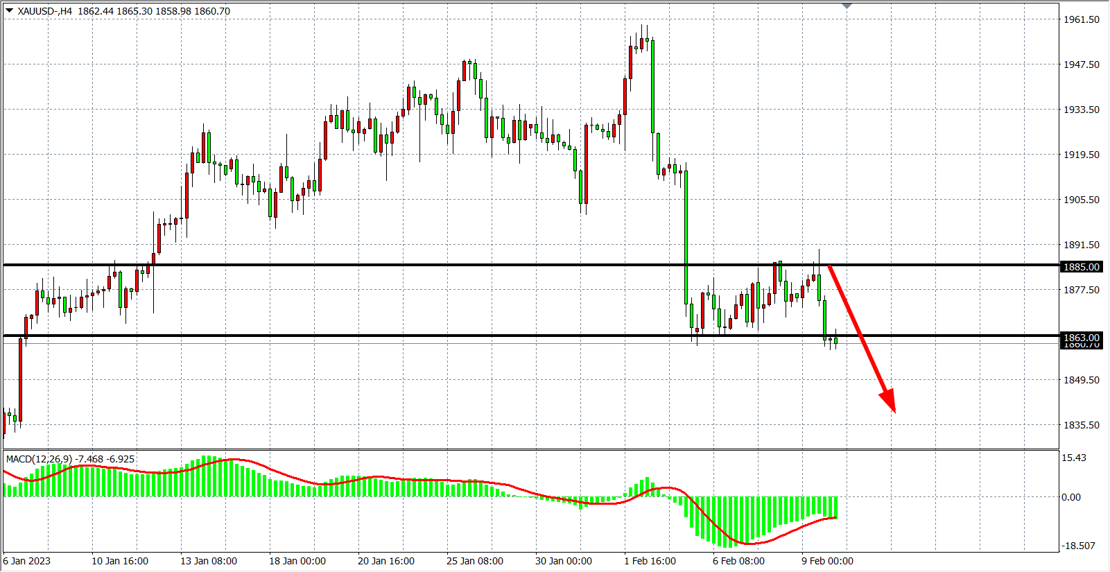 交易策略:在1885.00 之下看跌,目标1850.00 1830.00