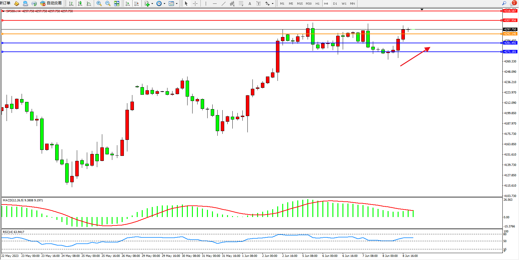 标普500指数6月8日(周四)收盘上涨25.98点,涨幅0.61%,报4293.50点;美国至6月3日当周初请失业金人数 26.1万人,预期23.5万人,前值23.2万人。为2021年10月30日当周以来新高。美国上周初请失业金人数激增,表明在经济衰退风险加大的情况下,劳动力市场正在放缓。